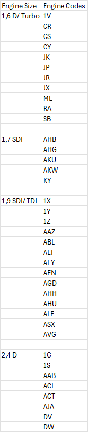 Additional Vehicle Info: Caddy,Corrado,Golf Mk1 Cabriolet,Golf Mk1,Golf Mk2,Golf Mk3,Golf Mk3 Cabrio,Jetta,Polo Mk3 6N,Polo Mk1/Mk2,Scirocco,Transporter T4,Vento